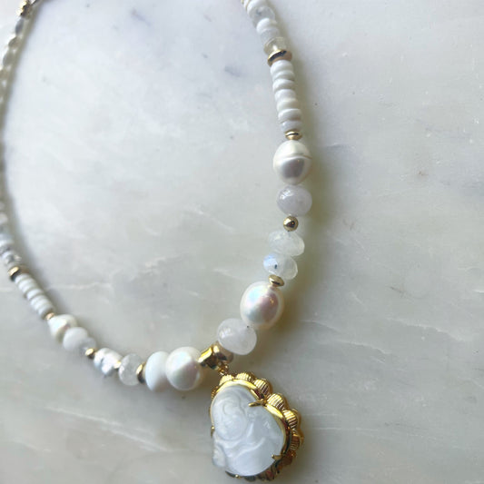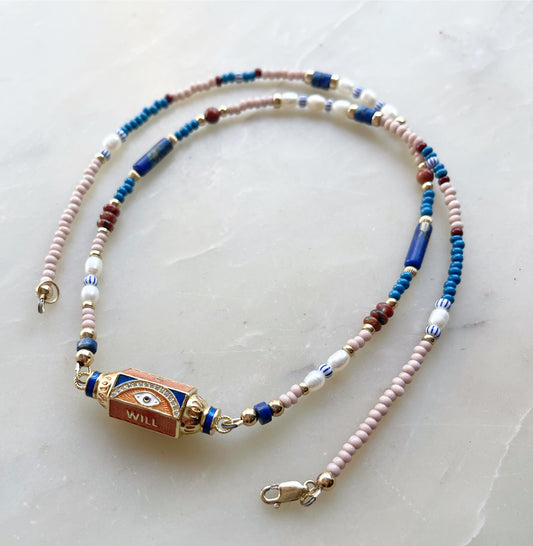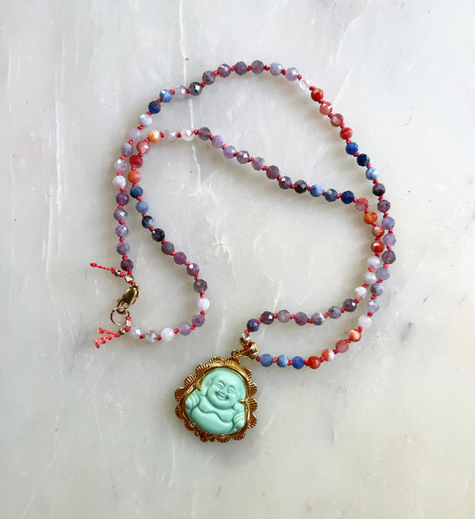 Semi Precious Stone Necklace with Vibrant Blue Buddha